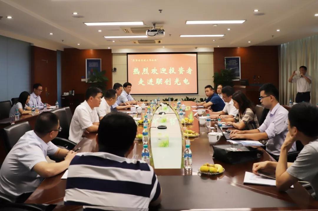 8月30日上午,中信建投證券股份有限公司組織的“投資者走進(jìn)上市公司”活動在子公司聯(lián)創(chuàng)光電舉辦。股份公司董事長等領(lǐng)導(dǎo)熱情地接待了中信建投江西分公司副總經(jīng)理吳雄及來訪的二十多位投資者。