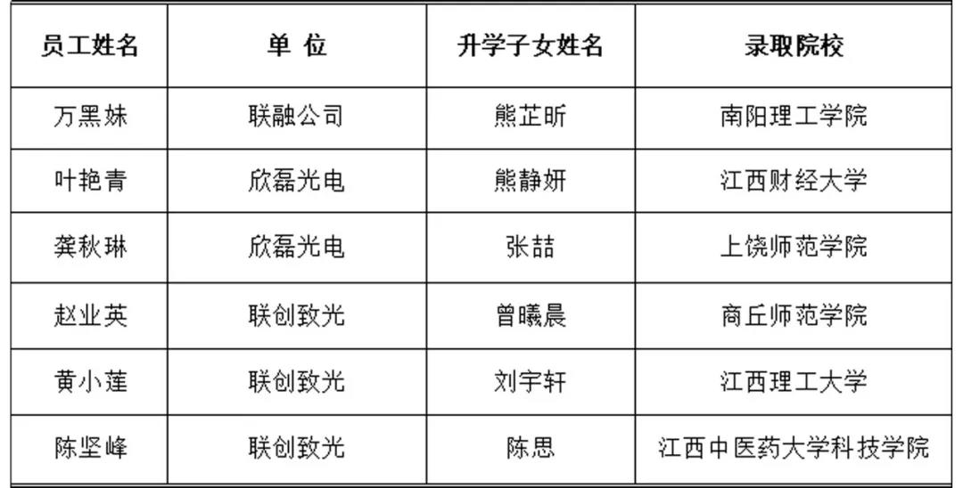 聯(lián)創(chuàng)光電2019年金秋助學(xué)獎(jiǎng)勵(lì)名單
